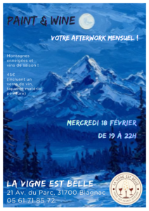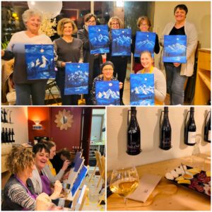 Réalisez votre tableau selon un motif proposé à chaque séance, tout en dégustant un bon vin recommandé par Julien ainsi que les délicieuses tapas préparées par Evelyne…